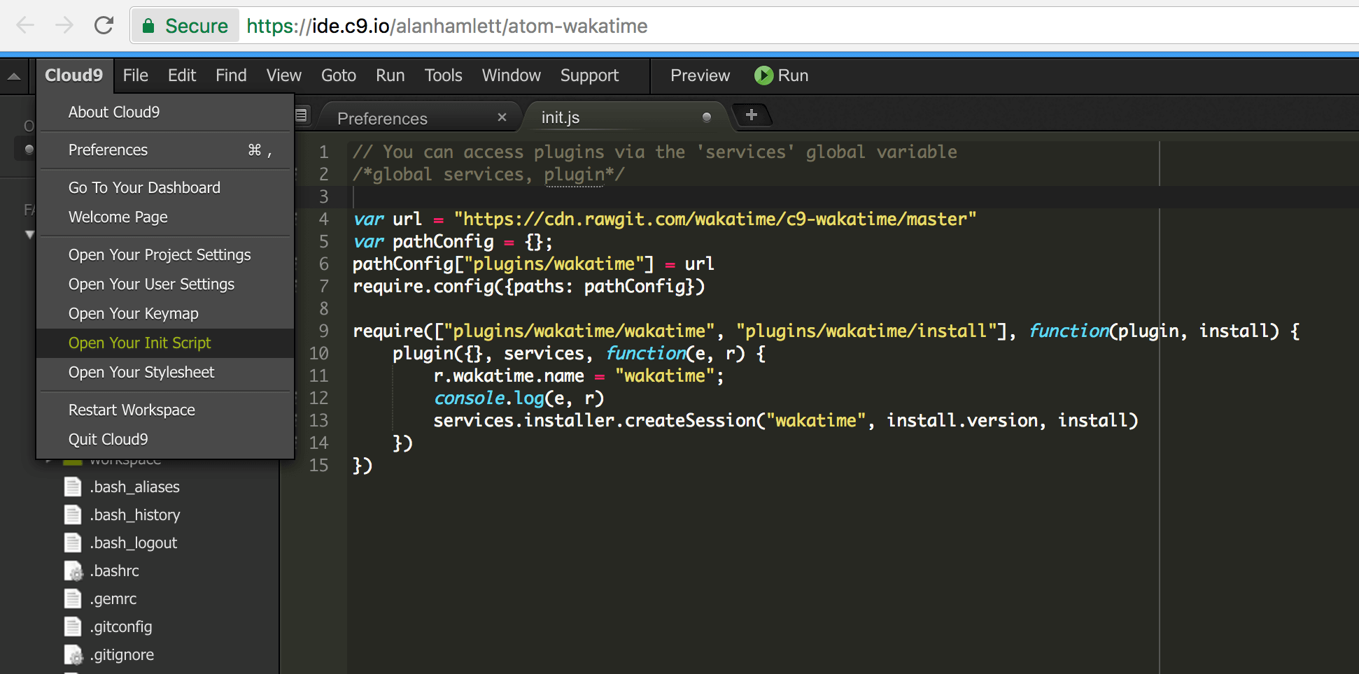 Open your Init Script from Cloud9 → Open Your Init Script.