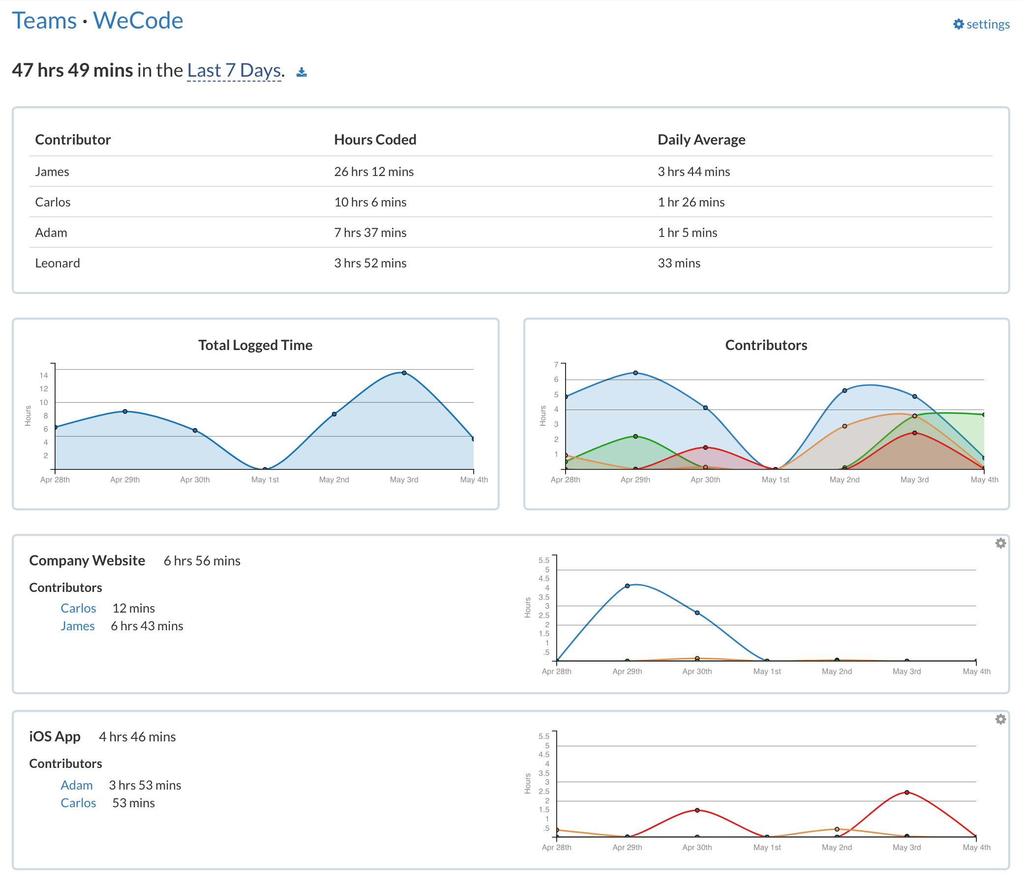 We build for the individual developer first. For example, developers can keep all their projects hidden by default and only show certain projects to the team. Team dashboards can be set fully anonymous, where only aggregate time is shown without attributing time to any individual. We never access your source code. WakaTime plugins only send the file paths opened in developer IDEs, not the contents of the files.